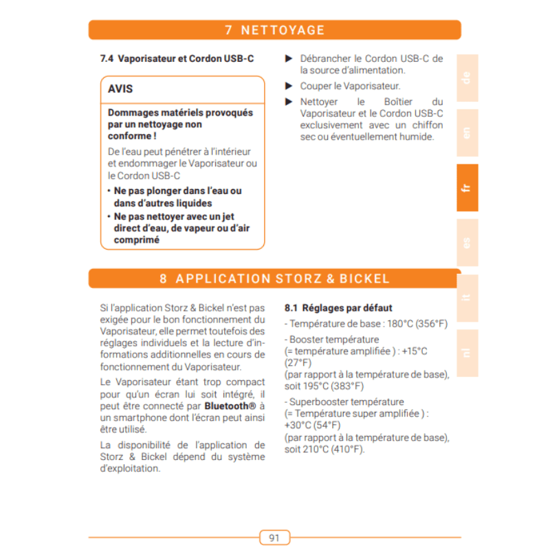 - 3 températures prédéfinies : 180°C pour la température de base, +15°C en double-cliquant pour la température boostée et +30°C en triple-cliquant pour la super température boostée).
