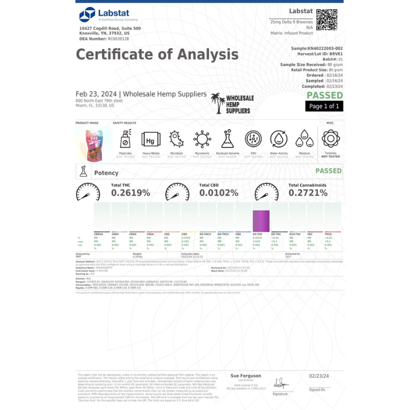 - 250mg de Delta 9 THC au total, soit 25mg par brownie