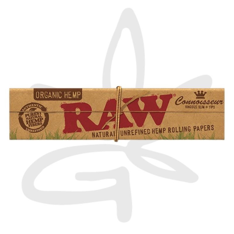 Découvrez ces feuilles à rouler Connoisseur King size Slim Organic Hemp x32 + toncars - Raw, renfermant 32 feuilles à rouler au format King Size Slim, ainsi que 32 filtres en carton de haute qualité.