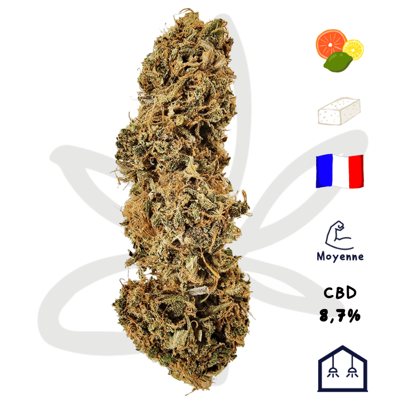 Son profil sucré-agrumes, associé à ses 8,7 % de CBD, promet une expérience sensorielle intense et apaisante. Sans ajouts artificiels ni altération chimique, c'est le CBD français dans toute son authenticité.