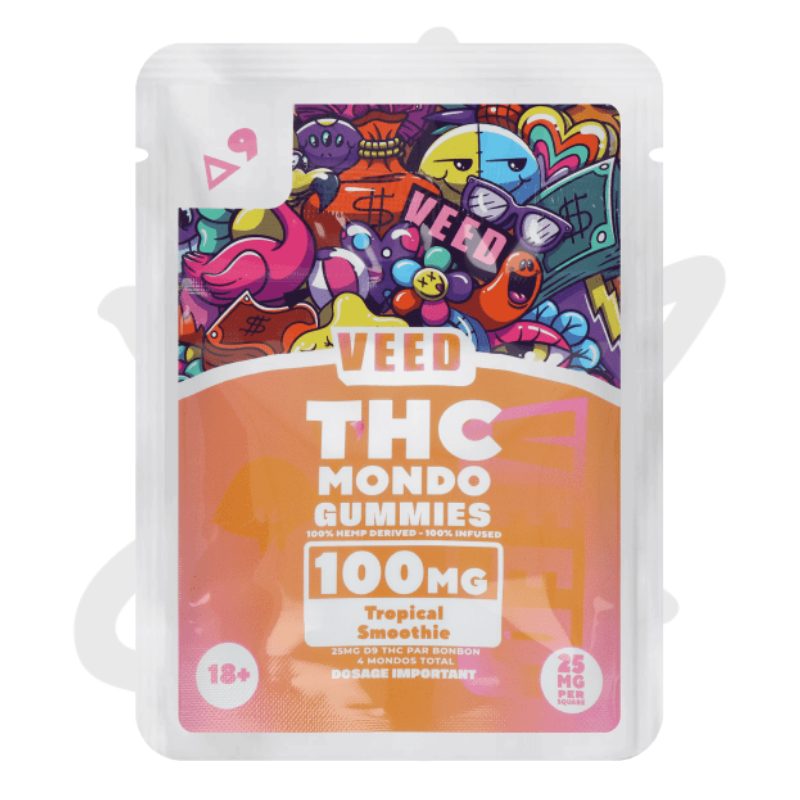 Imagine un bonbon fruitĂ©, tout doux, tout mignon⊠mais avec un twist bien perchĂ© đŽ Ces gummies THC signĂ©s VEED, saveur Tropical Smoothie, ne sont pas lĂ pour te bercer : chaque piĂšce contient 25mg de Delta 9 THC, pour un total de 100mg par sachet.