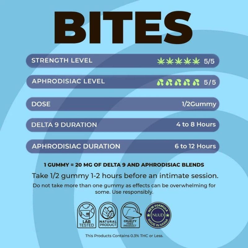 Avec les Sex Bites Myrtille, NUUD propose un Ă©quilibre parfait entre goĂ»t dĂ©licieux, effets puissants et qualitĂ© irrĂ©prochable. Que tu recherches plus de confiance, une endurance accrue ou simplement une nouvelle façon de redĂ©couvrir la passion, ces gummies sont lĂ pour sublimer chaque moment. Opter pour NUUD, câest faire le choix de lâinnovation et de lâexcellence dans lâunivers des produits aphrodisiaques Ă base de THC !