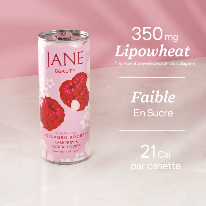 Découvrez JANE Beauty, la boisson innovante aux arÎmes de framboise et sureau, conçue pour une peau éclatante et revitalisée chaque jour.
