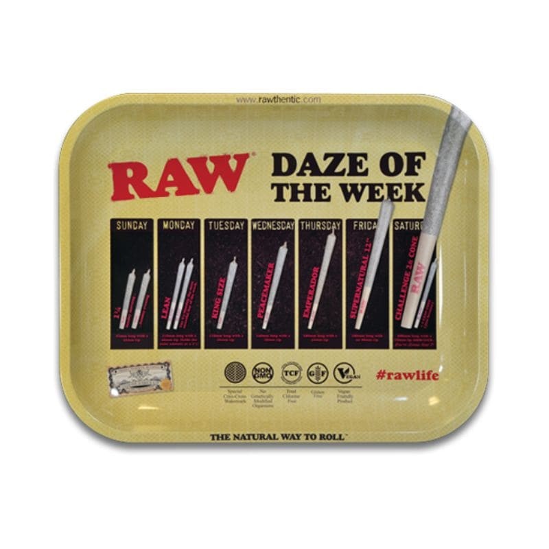 Le plateau à rouler Raw "Dayz of the Week", c’est ton agenda version chill : du lundi au dimanche, une vibe différente, mais toujours le même kiff. Avec ses 34 x 28 cm, tu disposes d’un vrai QG de roulage, assez large pour poser grinder, feuilles, filtres et bonne humeur.