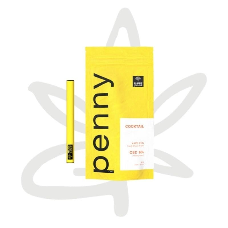 Le Vape Pen Penny Cocktail 300 puffs CBD 6% - CBD Marie Jeanne a une teneur en CBD de 600mg pour 10ml et permet un hit en bouche très intéressant avec des effets en adéquation avec le CBD de la marque Marie Jeanne.